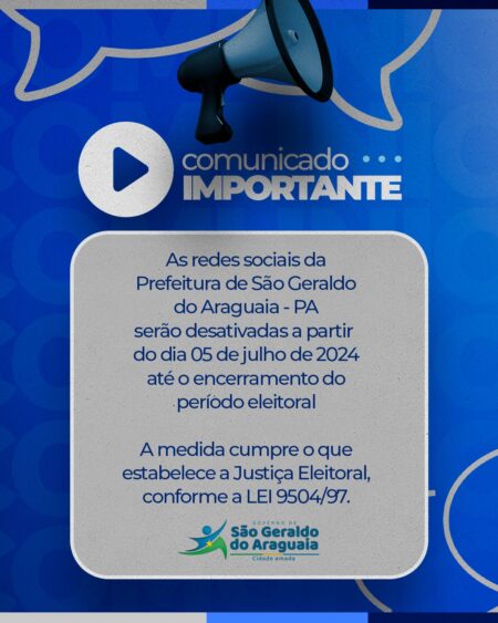 ATENÇÃO: A prefeitura de São Geraldo do Araguaia deixa de publicar notícias, fotos e demais informações no site oficial, em atendimento à Lei Eleitoral n° 9504/97.…